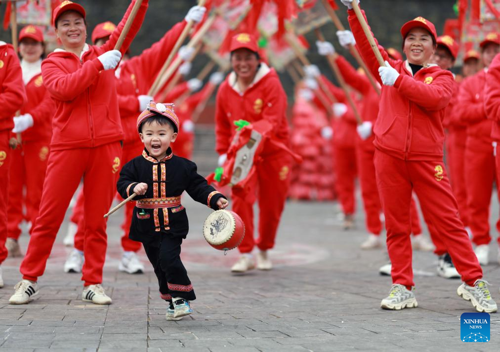 BEIJING, 22 enero, 2025 (Xinhua) -- Un niño es visto durante un espectáculo folclórico local, en el municipio yao de Lantian, en el distrito de Lingchuan, en la región autónoma zhuang de Guangxi, en el sur de China, el 22 de enero de 2025. Como el Año Nuevo chino de 2025 caerá el 29 de enero, la emoción es palpable en todas partes en China. El pueblo chino se sumerge en las costumbres tradicionales y participa en las festividades. El Año Nuevo chino, o el Festival de Primavera, cae el próximo miércoles, marcando el comienzo del Año de la Serpiente. (Xinhua/Liu Jiaoqing)