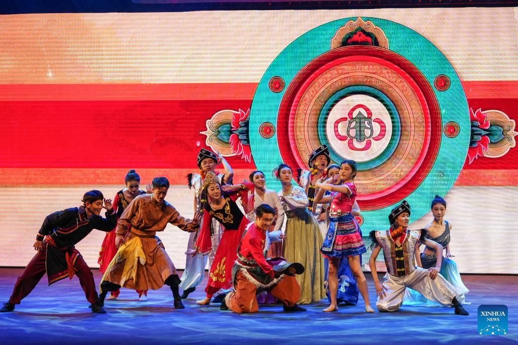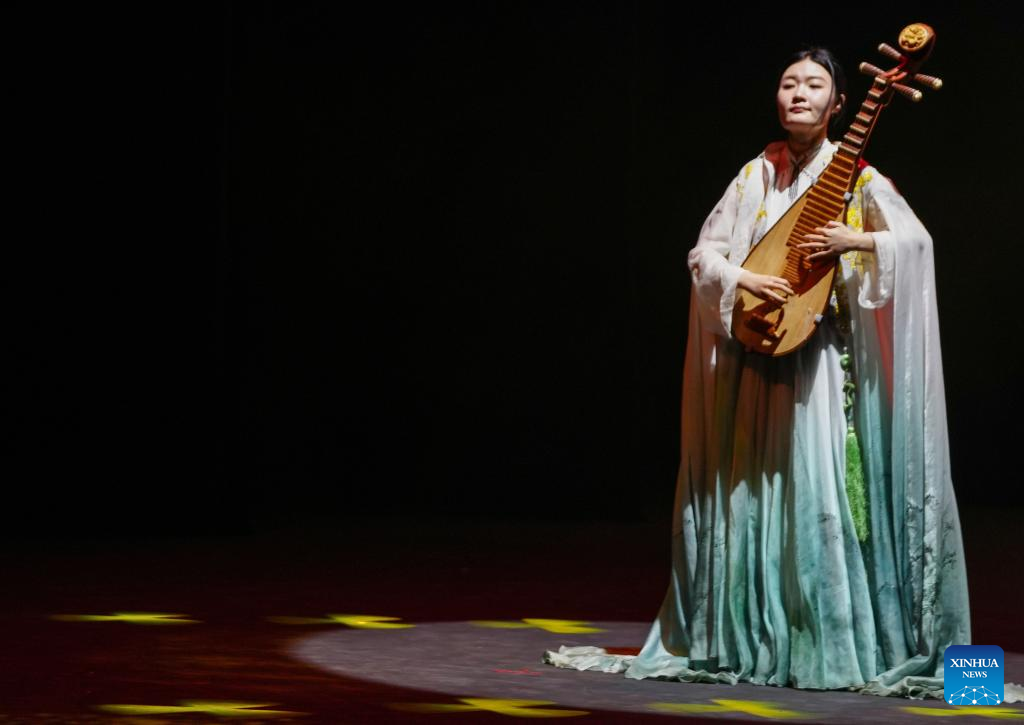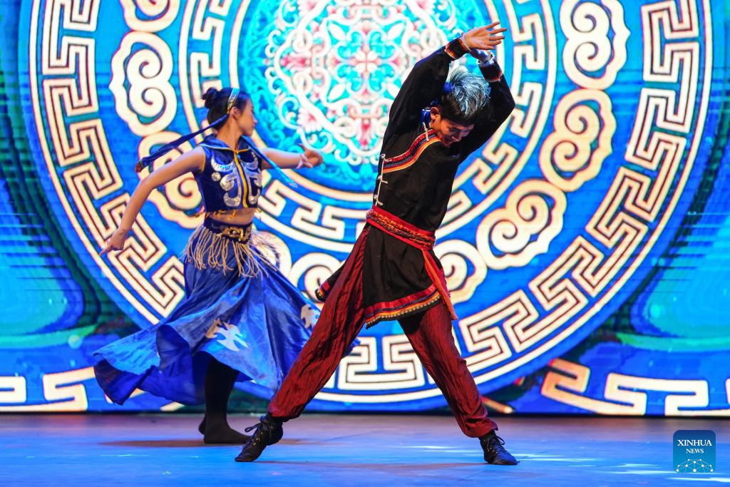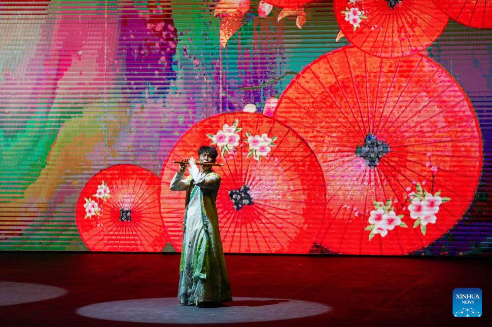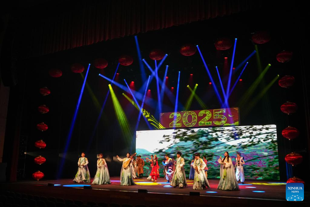 Imagen del 21 de enero de 2025 de artistas realizando una presentación durante la obra de danza Elegancia del Oriente en el marco del 45º aniversario del establecimiento de las relaciones diplomáticas entre Colombia y China y las celebraciones del Año Nuevo Chino, en Bogotá, Colombia. Con un espectacular montaje de la obra de danza Elegancia del Oriente, cientos de colombianos celebraron el 45º aniversario del establecimiento de las relaciones diplomáticas entre Colombia y China y dio inicio a las celebraciones del Año Nuevo Chino en la capital colombiana. (Xinhua/Andrés Moreno)