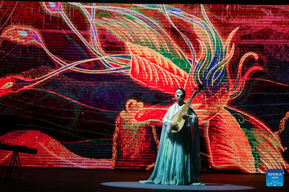 La noche del martes, el Teatro Mayor Julio Mario Santo Domingo se engalanó con la presentación del espectáculo que fusiona la danza tradicional china y la interpretación de emblemáticos instrumentos musicales con vistosas proyecciones, a cargo de las compañías Cixi Celadon Ou Music Troupe y Ningbo Performance & Arts Group de la ciudad de Ningbo, provincia de Zhejiang, en el este del país asiático.