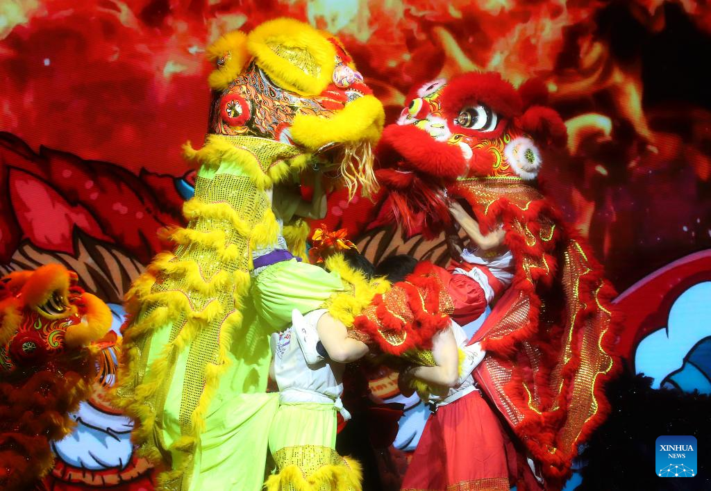 MINSK, 23 enero, 2025 (Xinhua) -- Imagen del 20 de enero de 2025 de estudiantes chinos presentando la danza del león durante una gala llevada a cabo para dar la bienvenida al próximo Festival de Primavera, o Año Nuevo chino, en Minsk, Bielorrusia. (Xinhua/Henadz Zhinkov)