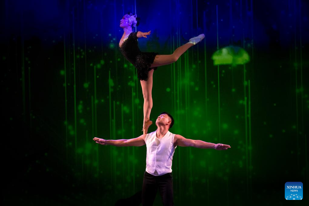 HELSINKI, 23 enero, 2025 (Xinhua) -- Imagen del 22 de enero de 2025 de acróbatas de China realizando una presentación durante un evento cultural chino para celebrar el próximo Festival de Primavera chino en el Teatro Savoy, en Helsinki, Finlandia. El evento se llevó a cabo aquí el miércoles atrayendo a aproximadamente 700 espectadores. (Xinhua/Matti Matikainen)