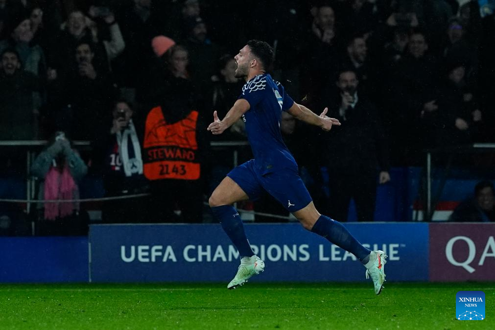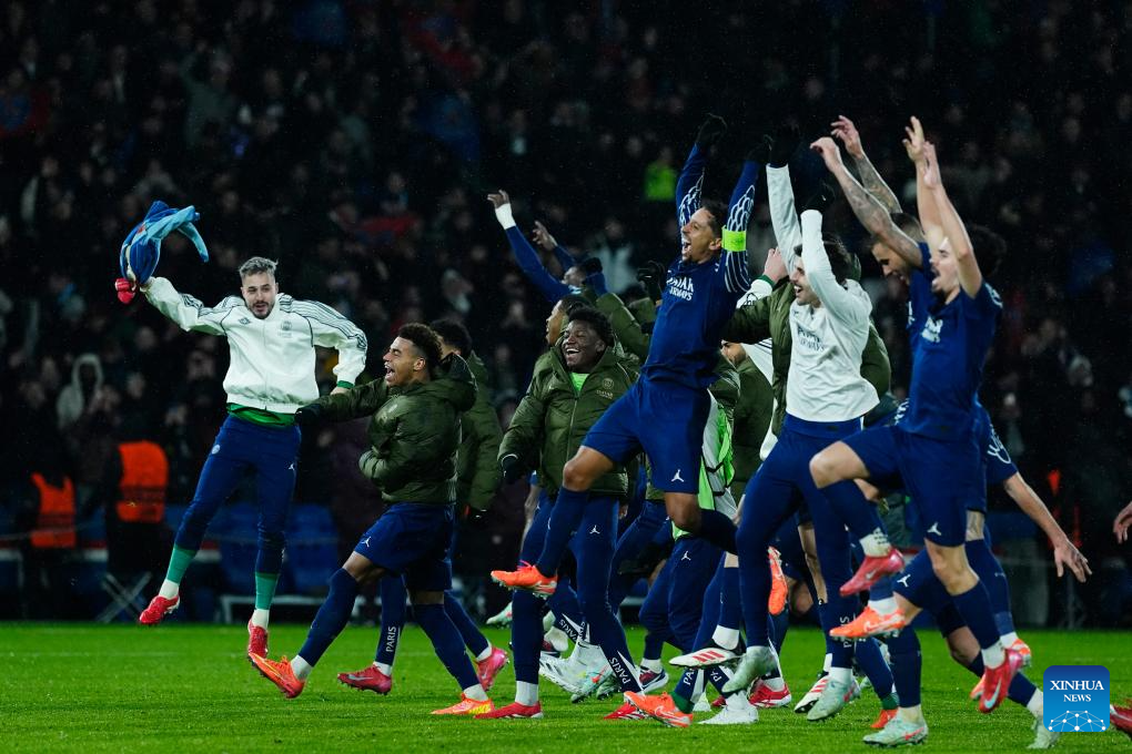 PARIS, 23 enero, 2025 (Xinhua) -- Imagen del 22 de enero de 2025 de jugadores de Paris Saint-Germain festejando al término del partido de fútbol de la Liga de Campeones de la UEFA entre Paris Saint-Germain y Manchester City, en París, Francia. (Xinhua/Glenn Gervot)