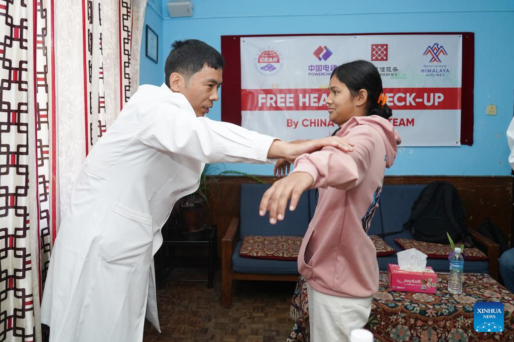 KATMANDU, 23 enero, 2025 (Xinhua) -- Imagen del 22 de enero de 2025 de un médico de un equipo médico chino ofreciendo un chequeo de salud gratuito a una huérfana en Prayas Nepal, una organización no gubernamental sin fines de lucro, en Katmandú, Nepal. Médicos de un equipo médico chino en Nepal brindaron chequeos de salud gratuitos a algunos huérfanos en Katmandú, la capital del país, el miércoles. (Xinhua/Hari Maharjan)