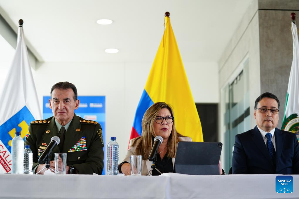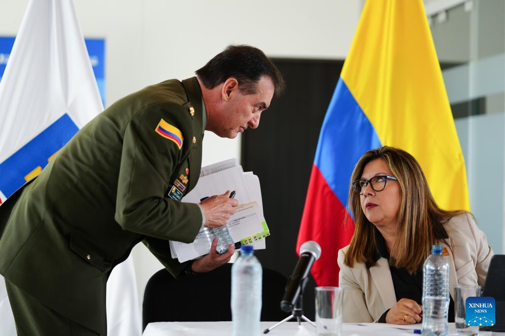 El director de la Policía, general William Salamanca, participa durante la rueda de prensa sobre la situación y las acciones institucionales en la región del Catatumbo, llevada a cabo en las instalaciones de la Fiscalía General de la Nación, en la ciudad de Bogotá, Colombia, el 23 de enero 2025. La crisis humanitaria y violencia que se vive en la región colombiana de Catatumbo (noreste), la cual ha dejado decenas de muertos y miles de desplazados y campesinos confinados, se está extendiendo a otras regiones del país como Guaviare (sur), alertó el jueves la fiscal colombiana, Luz Adriana Camargo. (Xinhua/Andrés Moreno)