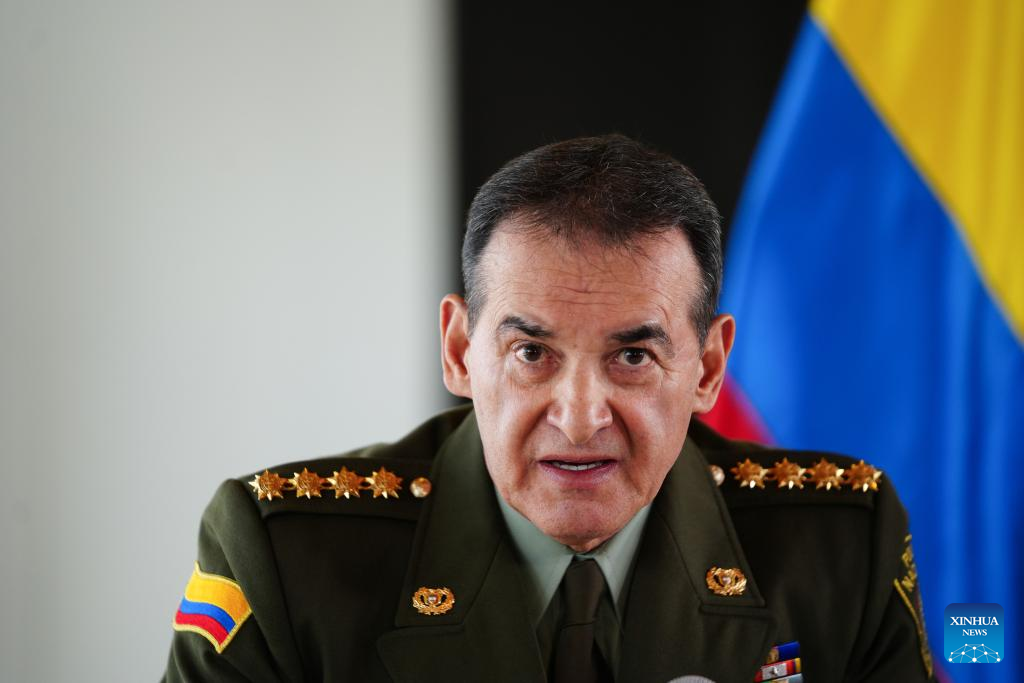 El director de la Policía, general William Salamanca, habla durante la rueda de prensa sobre la situación y las acciones institucionales en la región del Catatumbo, llevada a cabo en las instalaciones de la Fiscalía General de la Nación, en la ciudad de Bogotá, Colombia, el 23 de enero 2025. La crisis humanitaria y violencia que se vive en la región colombiana de Catatumbo (noreste), la cual ha dejado decenas de muertos y miles de desplazados y campesinos confinados, se está extendiendo a otras regiones del país como Guaviare (sur), alertó el jueves la fiscal colombiana, Luz Adriana Camargo. (Xinhua/Andrés Moreno)