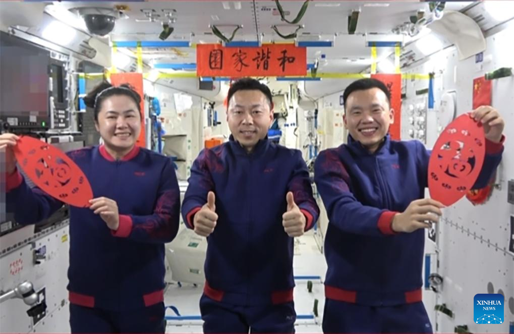 BEIJING, 28 ene (Xinhua) -- Los astronautas de la misión Shenzhou-19, Cai Xuzhe, Song Lingdong y Wang Haoze, enviaron sus saludos por la Fiesta de la Primavera desde la estación espacial china Tiangong, en un video publicado por la Agencia de Vuelos Espaciales Tripulados de China (CMSA, por sus siglas en inglés) en la víspera del Año Nuevo chino.