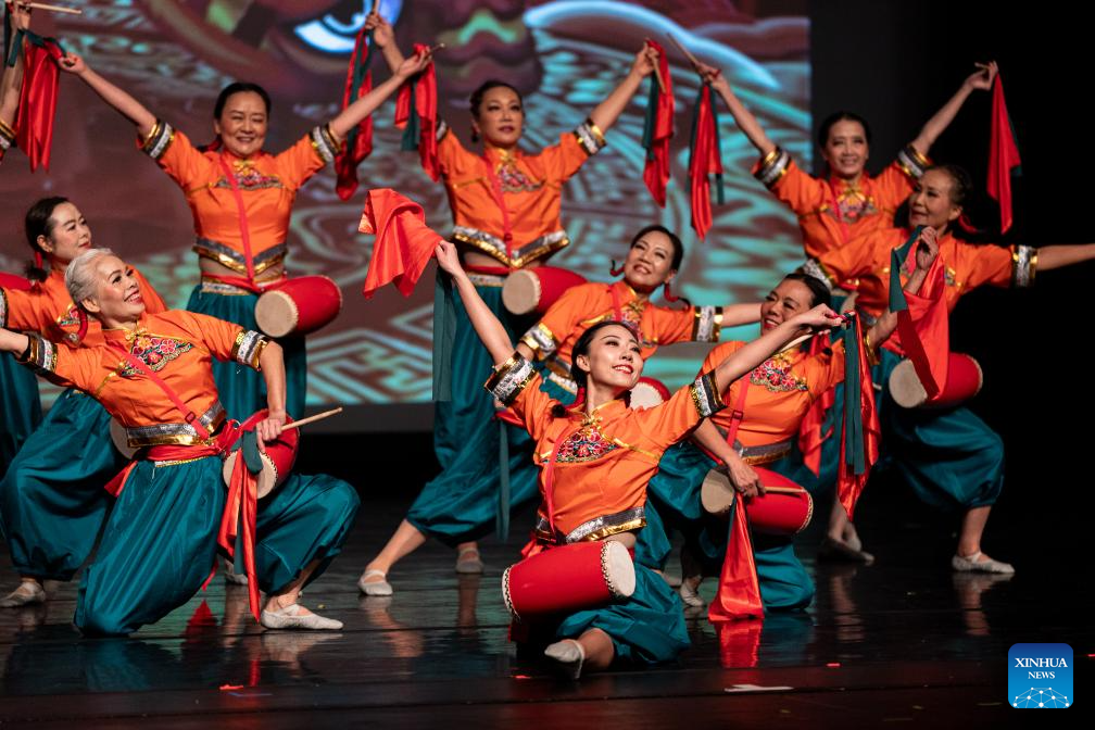HOUSTON, 27 enero, 2025 (Xinhua) -- Imagen del 26 de enero de 2025 de artistas presentando una danza china durante la Gala de la Fiesta de la Primavera del Gran Houston, en Houston, Texas, Estados Unidos. Bajo el lema "Bailando hacia el Año de la Serpiente", la Gala de la Fiesta de la Primavera del Gran Houston se celebró el domingo por la noche en la cuarta ciudad más grande de Estados Unidos. (Xinhua/Chen Chen)