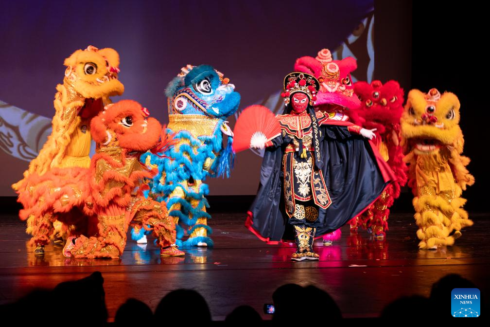 HOUSTON, 27 enero, 2025 (Xinhua) -- Imagen del 26 de enero de 2025 de artistas realizando una presentación del cambio de rostro de la ópera de Sichuan y la danza del león durante la Gala de la Fiesta de la Primavera del Gran Houston, en Houston, Texas, Estados Unidos. Bajo el lema "Bailando hacia el Año de la Serpiente", la Gala de la Fiesta de la Primavera del Gran Houston se celebró el domingo por la noche en la cuarta ciudad más grande de Estados Unidos. (Xinhua/Chen Chen)