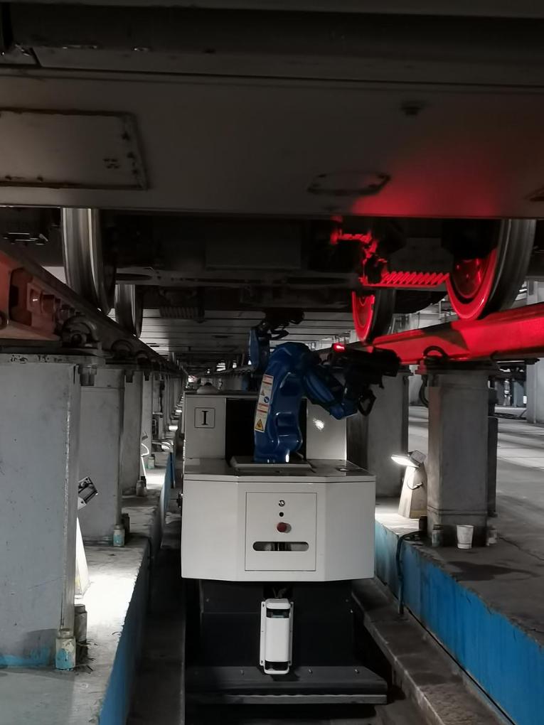 Utilizando tecnología de navegación y posicionamiento por radar láser, los robots se mueven a lo largo de las vías. Equipados con dos brazos articulados con dispositivos de imagen, ajustan la altura y el ángulo, escaneando meticulosamente la parte inferior y los componentes del tren, mientras transmiten análisis de inteligencia artificial (IA) en tiempo real para su posterior revisión.