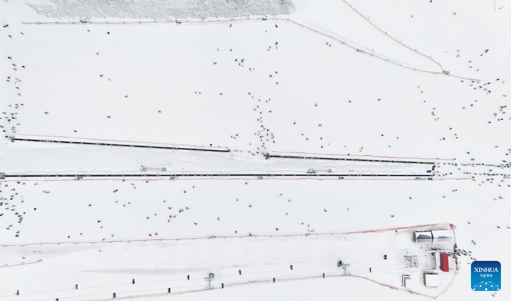 BEIJING, 4 febrero, 2025 (Xinhua) -- Vista aérea tomada con un dron el 31 de enero de 2025 de personas esquiando en la estación de esquí de Qiangrengu, en el distrito de Wenchuan, en la prefectura autónoma tibetana y qiang de Aba, en la provincia de Sichuan, en el suroeste de China. Durante las vacaciones de la Fiesta de la Primavera, muchos destinos turísticos en China han atraído a los visitantes con actividades sobre hielo y nieve. (Xinhua/Liu Kun)