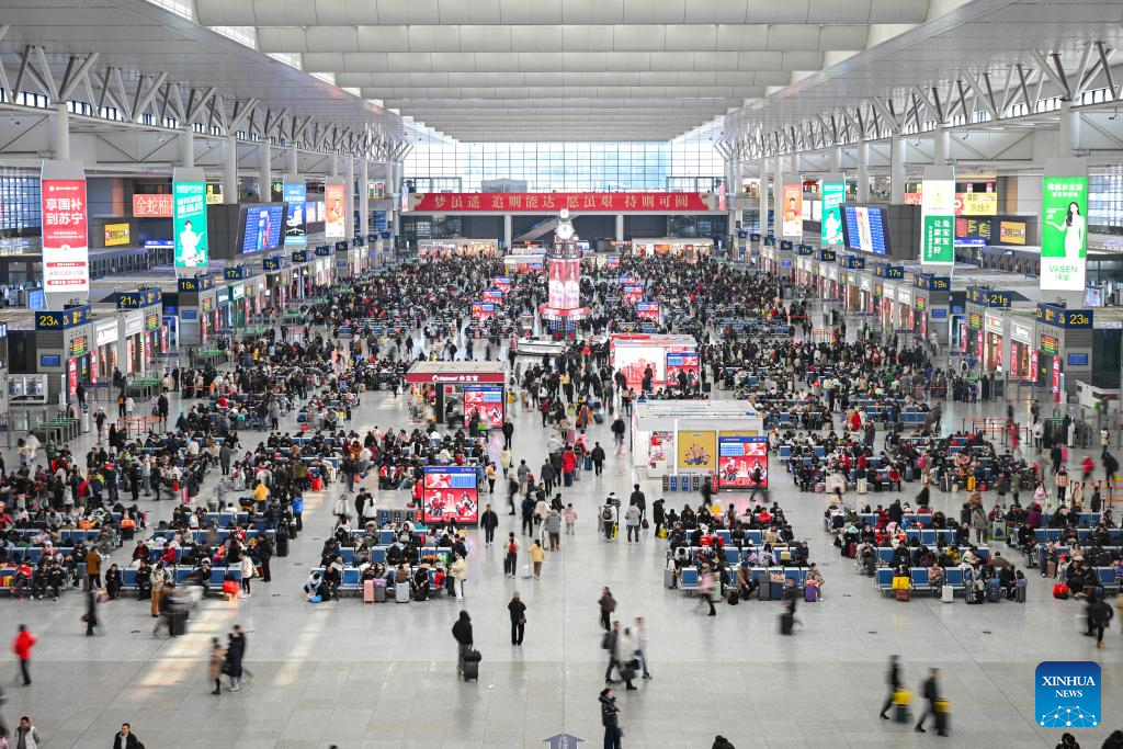 BEIJING, 4 febrero, 2025 (Xinhua) -- Pasajeros son vistos en la sala de espera de la Estación de Ferrocarril Hongqiao de Shanghai, en Shanghai, en el este de China. China fue testigo de un aumento de los viajes de pasajeros el martes, ya que las vacaciones de la Fiesta de la Primavera de este año están llegando a su fin. (Xinhua/Chen Haoming)