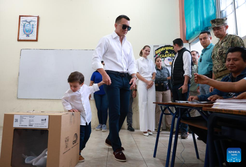 QUITO, 9 feb (Xinhua) -- El presidente de Ecuador y candidato a la reelección, Daniel Noboa, ejerció hoy domingo el voto en las elecciones presidenciales y legislativas, en las que busca ser reelegido para prolongar su mandato por un periodo completo (2025-2029).