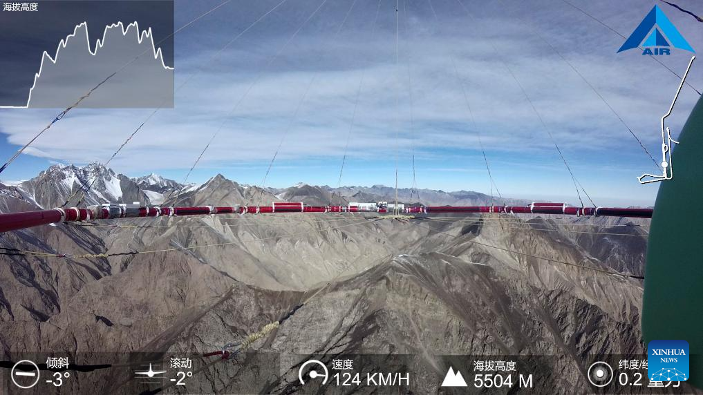 BEIJING, 18 febrero, 2025 (Xinhua) -- Imagen del 28 de diciembre de 2024 del sistema de detección magnetotelúrico aerotransportado por helicóptero funcionando en Hetian, en la región autónoma uygur de Xinjiang, en el noroeste de China. El primer sistema de detección magnetotelúrico aerotransportado por helicóptero de China se ha aplicado con éxito a un proyecto de construcción ferroviaria en una meseta, informó el martes el Instituto de Investigación de Información Aeroespacial (AIR, por sus siglas en inglés) de la Academia de Ciencias de China. (Xinhua/Huang Ling)