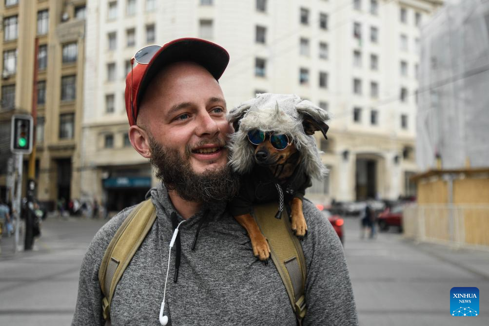 VALPARAISO, 18 febrero, 2025 (Xinhua) -- Un hombre pasea a su perro por una calle, en la ciudad de Valparaíso, Chile, el 18 de febrero de 2025. (Xinhua/Jorge Villegas)