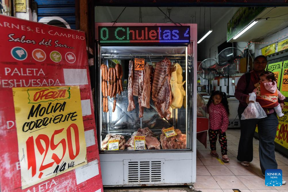 VALPARAISO, 18 febrero, 2025 (Xinhua) -- Personas salen de una carnicería, en la ciudad de Valparaíso, Chile, el 18 de febrero de 2025. (Xinhua/Jorge Villegas)
