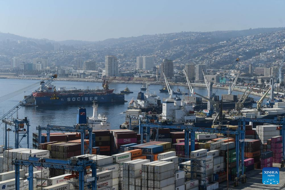 VALPARAISO, 21 febrero, 2025 (Xinhua) -- Imagen del 21 de febrero de 2025 de un buque cargado con contenedores en el Puerto de Valparaíso, en la ciudad de Valparaíso, Chile. Chile tiene grandes oportunidades con la diversificación de nuevas exportaciones a China, como ha ocurrido en los últimos años con las cerezas o el litio, destacó el economista Fernando Cabrales. (Xinhua/Jorge Villegas)