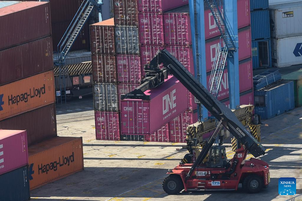 VALPARAISO, 21 febrero, 2025 (Xinhua) -- Imagen del 21 de febrero de 2025 de contenedores apilados en el Puerto de Valparaíso, en la ciudad de Valparaíso, Chile. Chile tiene grandes oportunidades con la diversificación de nuevas exportaciones a China, como ha ocurrido en los últimos años con las cerezas o el litio, destacó el economista Fernando Cabrales. (Xinhua/Jorge Villegas)