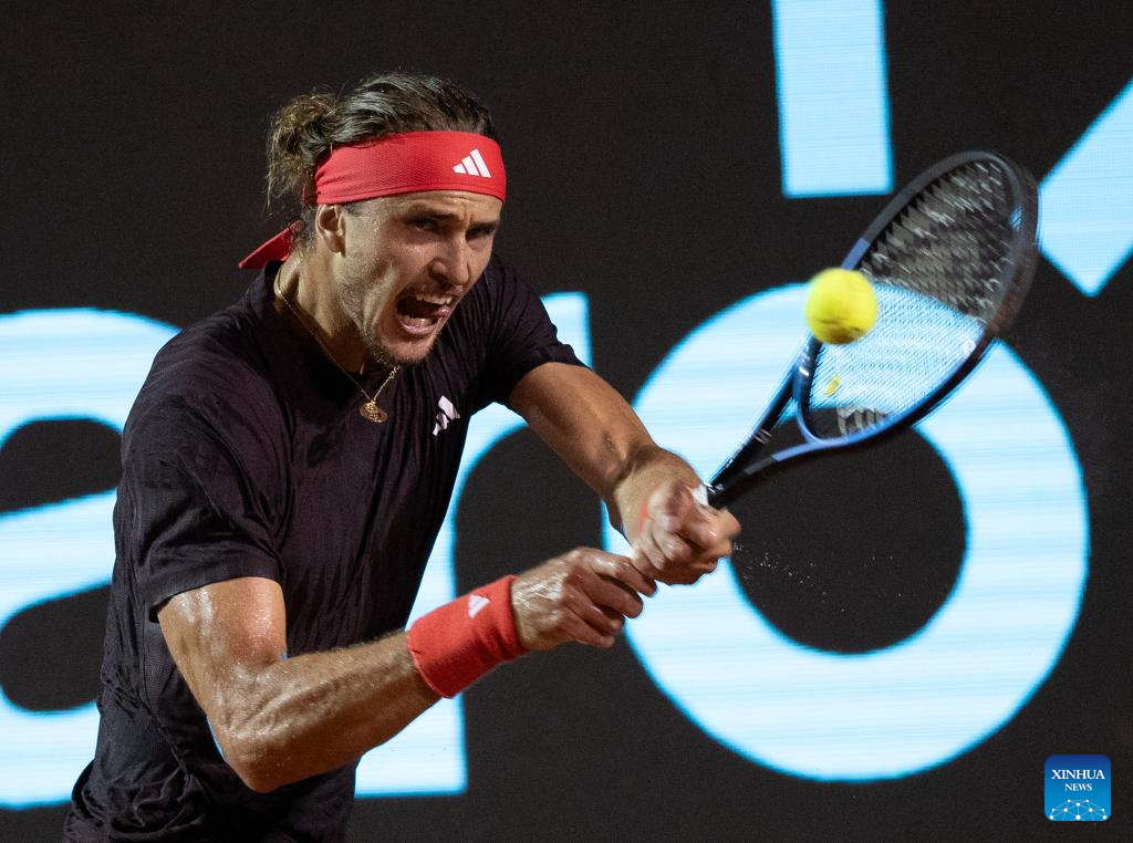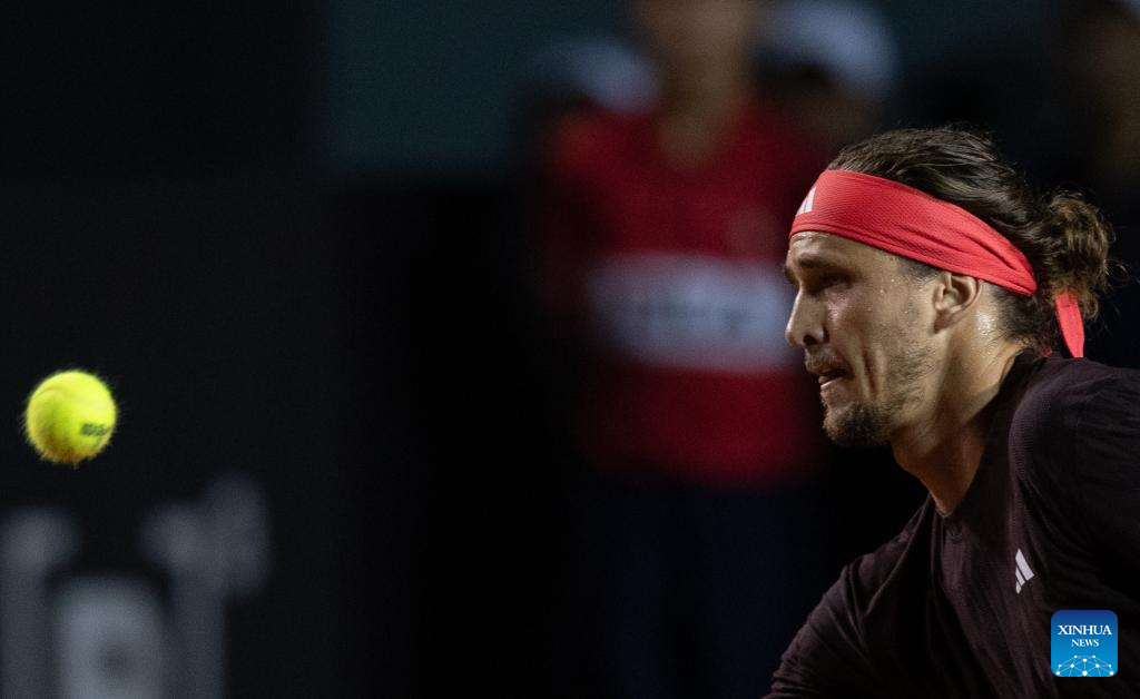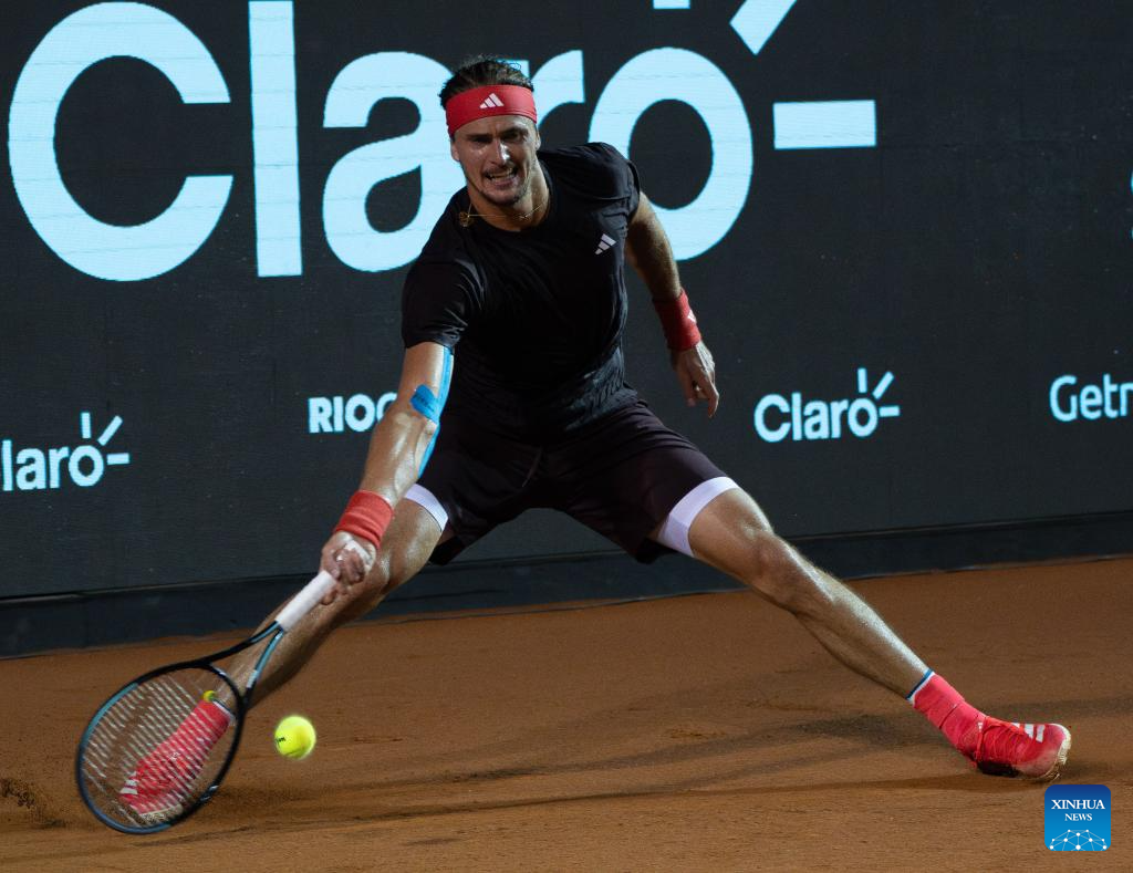 RIO DE JANEIRO, 22 febrero, 2025 (Xinhua) -- Imagen del 21 de febrero de 2025 de Alexander Zverev, de Alemania, devolviendo la pelota durante el partido de cuartos de final de individuales masculinos ante Francisco Comesaña, de Argentina, en el Río Open de la ATP 500 2025 en el Jockey Club Brasileiro, en Río de Janeiro, Brasil. (Xinhua/Wang Tiancong)