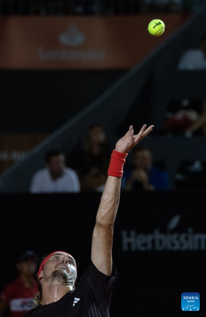 RIO DE JANEIRO, 22 febrero, 2025 (Xinhua) -- Imagen del 21 de febrero de 2025 de Alexander Zverev, de Alemania, sirviendo la pelota durante el partido de cuartos de final de individuales masculinos ante Francisco Comesaña, de Argentina, en el Río Open de la ATP 500 2025 en el Jockey Club Brasileiro, en Río de Janeiro, Brasil. (Xinhua/Wang Tiancong)