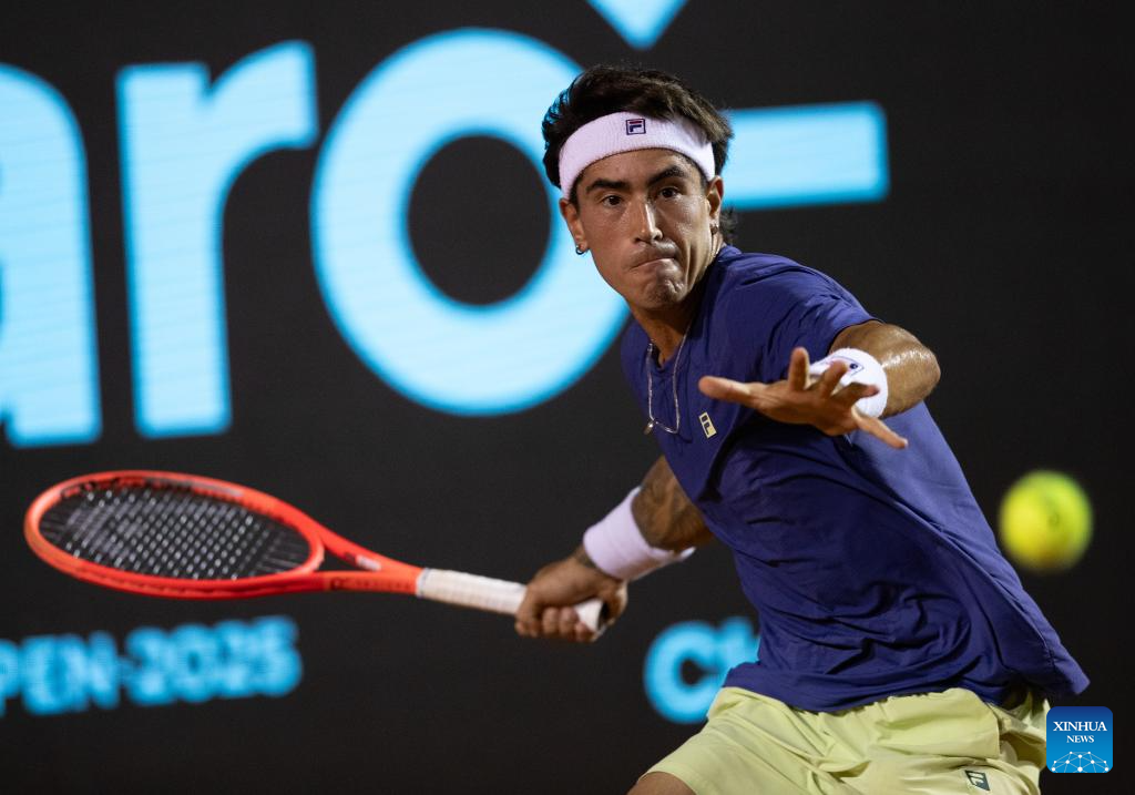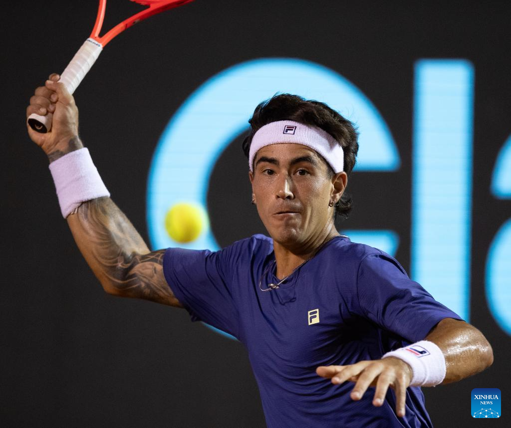 RIO DE JANEIRO, 22 febrero, 2025 (Xinhua) -- Imagen del 21 de febrero de 2025 de Francisco Comesaña, de Argentina, devolviendo la pelota durante el partido de cuartos de final de individuales masculinos ante Alexander Zverev, de Alemania, en el Río Open de la ATP 500 2025 en el Jockey Club Brasileiro, en Río de Janeiro, Brasil. (Xinhua/Wang Tiancong)