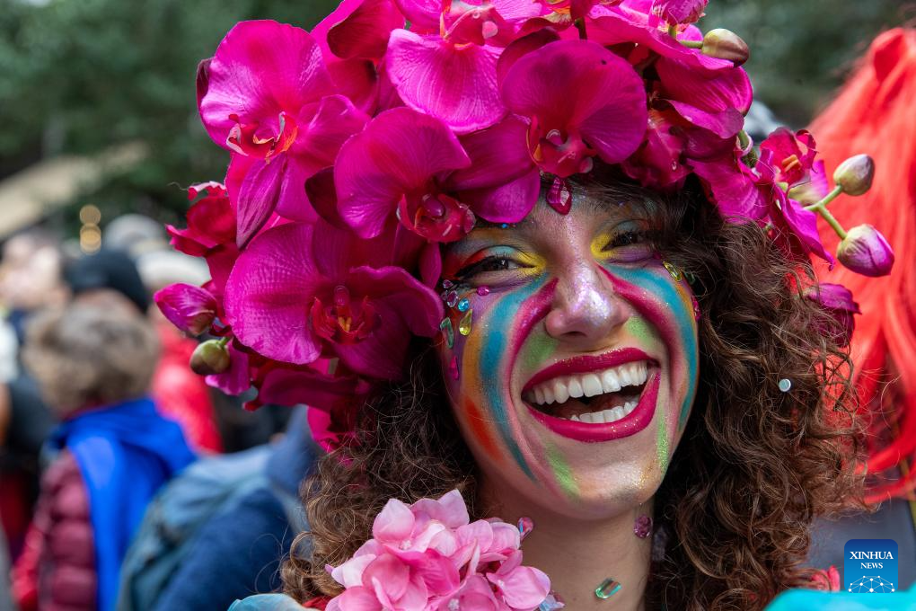 NICOSIA, 24 febrero, 2025 (Xinhua) -- Imagen del 23 de febrero de 2025 de una niña asistiendo al desfile de Carnaval de Nicosia, en Nicosia, Chipre. (Xinhua/George Christophorou)