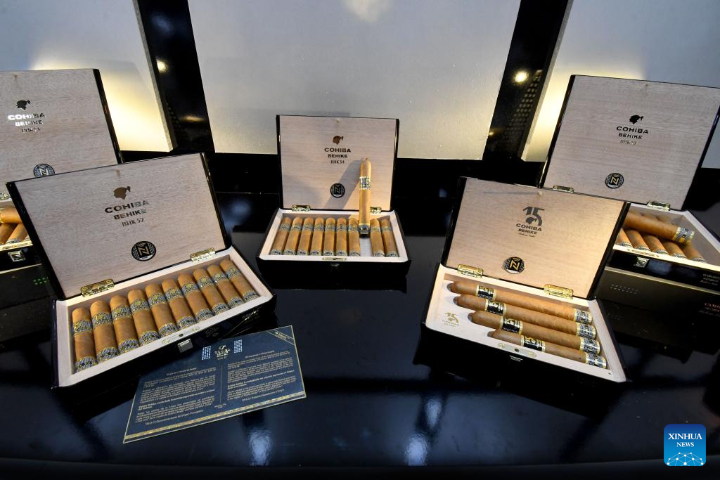 LA HABANA, 25 febrero, 2025 (Xinhua) -- Imagen del 24 de febrero de 2025 de cigarros Cohiba exhibidos durante la inauguración del 25 Festival Internacional del Habano, en La Habana, Cuba. El festival de cinco días se inauguró aquí el lunes, con unos 3.300 participantes de 110 países y regiones. (Xinhua/Joaquín Hernández)