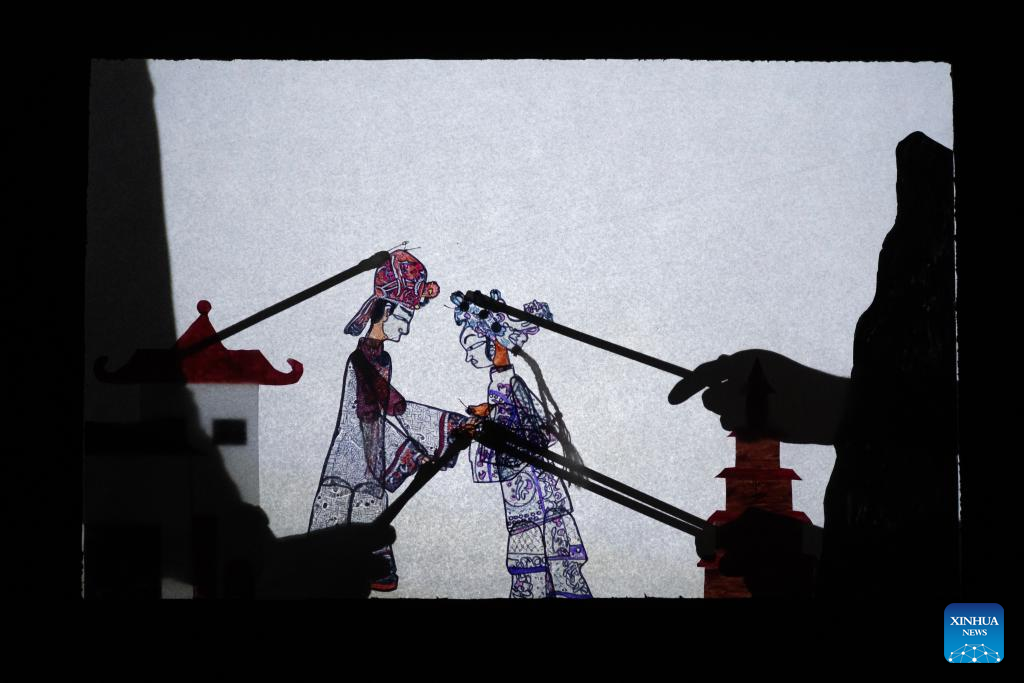 BUENOS AIRES, 26 febrero, 2025 (Xinhua) -- Imagen del 25 de febrero de 2025 de Uriel Núñez Ravez (d), alumno del Instituto Confucio de la Universidad de Buenos Aires (ICUBA), realizando una muestra de teatro de sombras que cuenta la "Historia de la serpiente blanca" durante el acto de inicio del calendario académico del ICUBA en el espacio cultural Sábato de la Facultad de Ciencias Económicas de la UBA, en la ciudad de Buenos Aires, capital de Argentina. El ICUBA dio inicio a su calendario académico en el Año de la Serpiente de madera con un emotivo acto cultural, que sirvió como un auspicioso comienzo para este nuevo ciclo. (Xinhua/Martín Zabala)