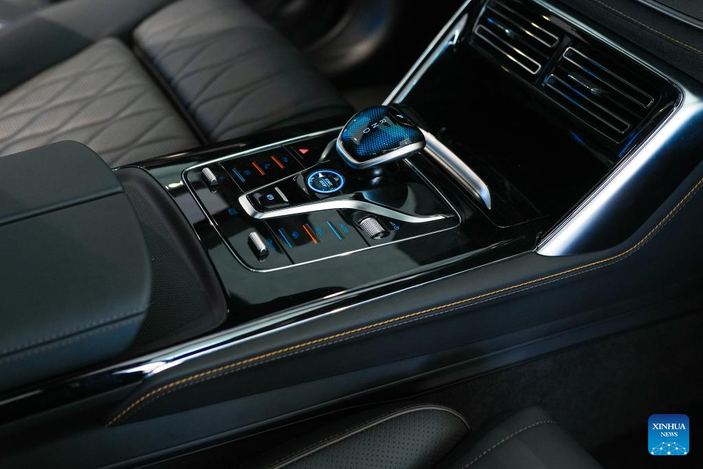 Imagen del 24 de febrero de 2025 del interior de un automóvil exhibido en las instalaciones del fabricante chino de vehículos eléctricos BYD, en la ciudad de Bogotá, Colombia. La empresa automotriz china de alta tecnología BYD ha tomado el liderazgo en el mercado de vehículos eléctricos de Colombia, al introducir 4.590 automóviles entre híbridos y eléctricos en las calles de las ciudades colombianas durante 2024, un crecimiento en ventas del 220 por ciento respecto a 2023. (Xinhua/Andrés Moreno)