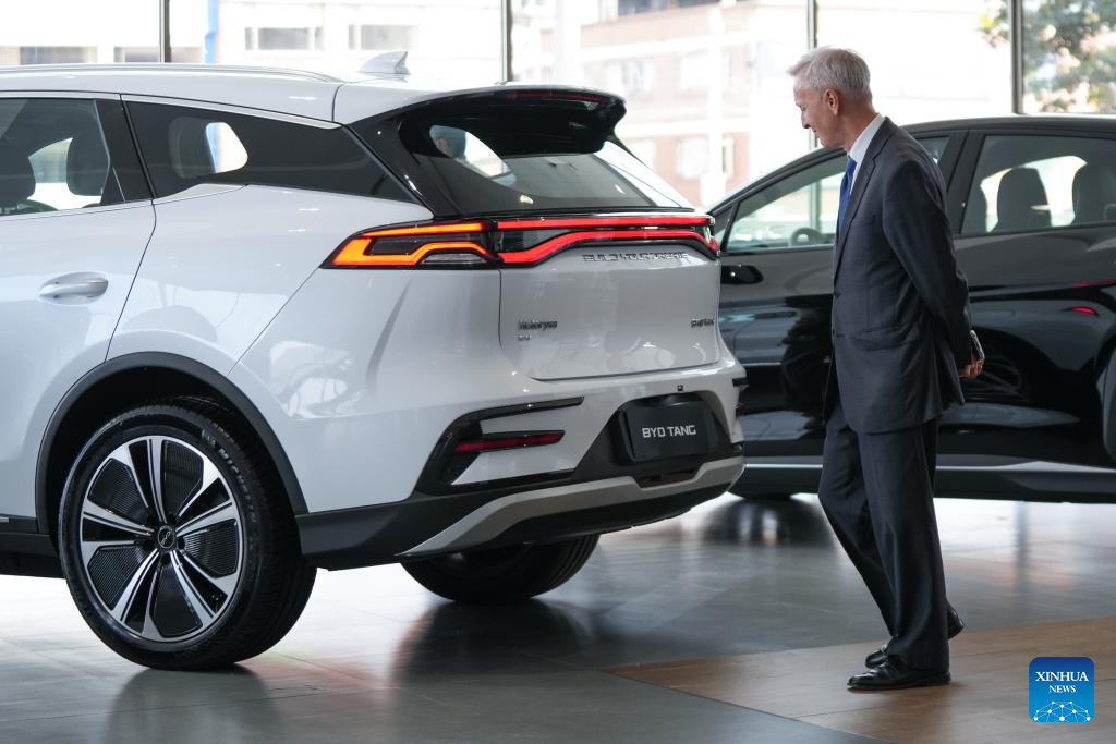 "Esto cambió significativamente lo que era el curso de la movilidad eléctrica en Colombia, porque ya el cliente pudo escoger entre comprar un carro de gasolina, un híbrido o un BYD eléctrico", señaló Behar en entrevista para Xinhua, en la principal vitrina de la marca en la ciudad de Bogotá.
