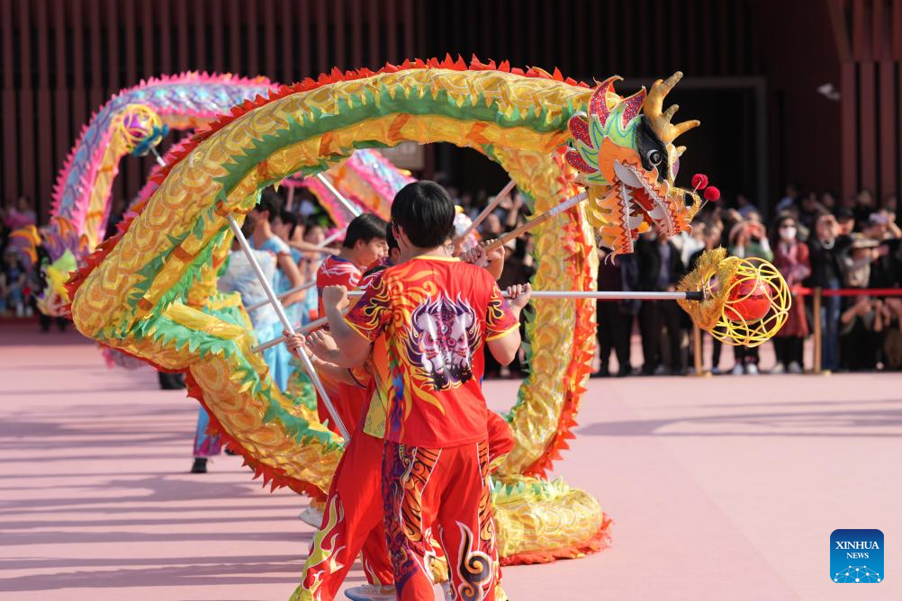 NINGBO, 1 marzo, 2025 (Xinhua) -- Artistas extranjeros realizan la Danza del Dragón de Tela de Fenghua durante un evento cultural, en Fenghua, en la provincia de Zhejiang, en el este de China, el 1 de marzo de 2025. La Danza del Dragón de Tela de Fenghua fue catalogada como patrimonio cultural inmaterial nacional de China en 2006. (Xinhua/Huang Zongzhi)