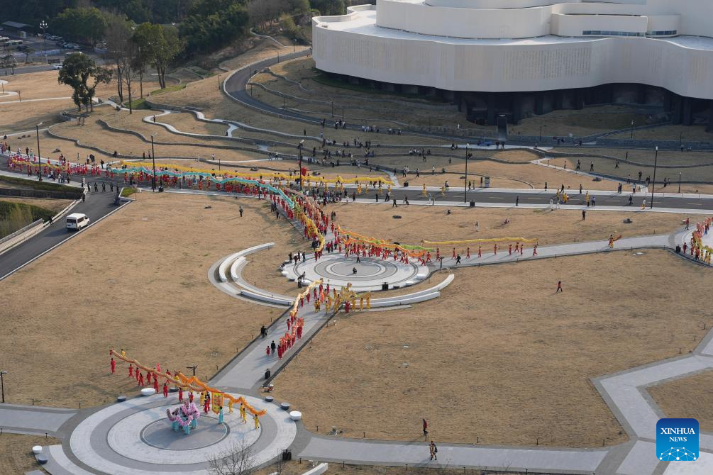 NINGBO, 1 marzo, 2025 (Xinhua) -- Personas realizan la Danza del Dragón de Tela de Fenghua durante un evento cultural, en Fenghua, en la provincia de Zhejiang, en el este de China, el 1 de marzo de 2025. La Danza del Dragón de Tela de Fenghua fue catalogada como patrimonio cultural inmaterial nacional de China en 2006. (Xinhua/Huang Zongzhi)