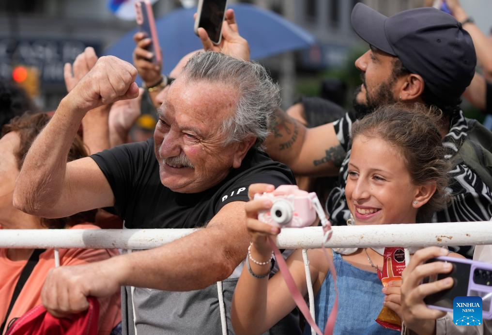 Personas asisten a la ceremonia de cambio de mando del presidente saliente uruguayo, Luis Lacalle Pou y el presidente entrante, Yamandú Orsi, en la Plaza Independencia, en Montevideo, capital de Uruguay, el 1 de marzo de 2025. Yamandú Orsi, del izquierdista Frente Amplio (FA), recibió el sábado la banda presidencial como símbolo del Gobierno que inicia para el periodo 2025-2030 convirtiéndose en el 43° mandatario constitucional de Uruguay. (Xinhua/Nicolás Celaya)