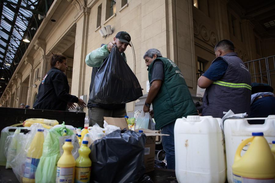 En la estación de trenes de Constitución, en la zona sur de Buenos Aires, cientos de voluntarios reciben donaciones para enviar a Bahía Blanca en el denominado "Tren solidario", una iniciativa que surgió hace más de 20 años para hacer llegar ayuda a distritos afectados por distintas catástrofes y, en paralelo, marcar la importancia de los trenes para la conectividad en el país.