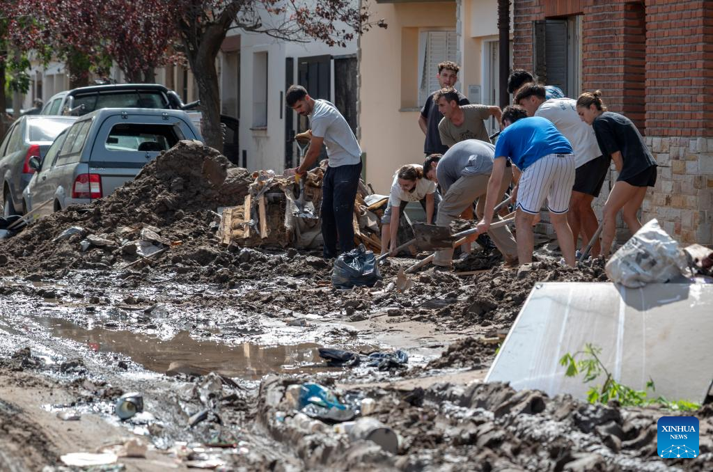 Personas retiran lodo y escombros frente a sus casas, en la ciudad de Bahía Blanca, Argentina, el 10 de marzo de 2025. El Gobierno de Argentina anunció el domingo que decretará tres días de duelo nacional por el fallecimiento de al menos 16 personas tras un feroz temporal de lluvias que azotó el viernes la ciudad argentina de Bahía Blanca, a unos 690 kilómetros al suroeste de Buenos Aires. (Xinhua/Str)