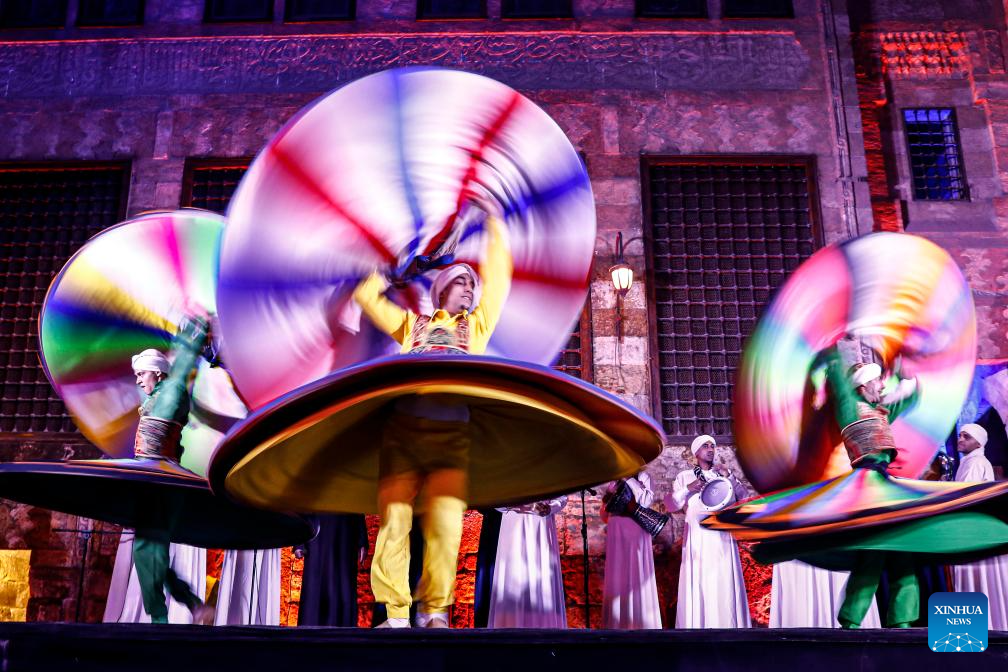 EL CAIRO, 13 marzo, 2025 (Xinhua) -- Imagen del 12 de marzo de 2025 de danzantes realizando Tanoura, una danza folclórica tradicional egipcia, durante el mes sagrado del Ramadán en el complejo Sultán Al-Ghuri, en El Cairo, Egipto. (Xinhua/Ahmed Gomaa)