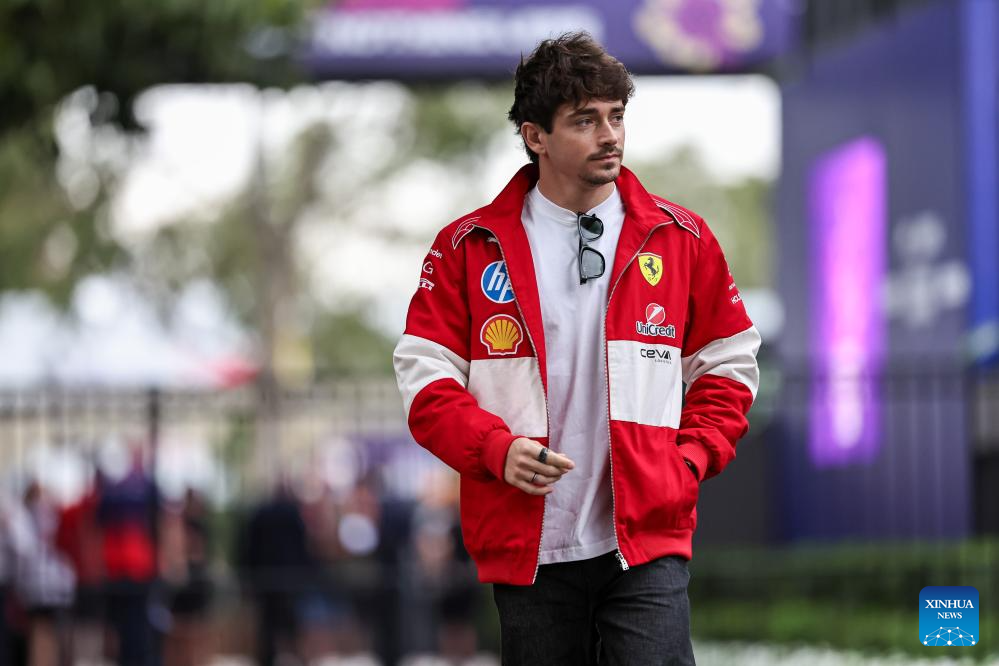 MELBOURNE, 13 marzo, 2025 (Xinhua) -- El piloto monegasco de la escudería Ferrari, Charles Leclerc, llega al paddock previo al Gran Premio de Australia de Fórmula Uno, en Albert Park, en Melbourne, Australia, el 13 de marzo de 2025. (Xinhua/Qian Jun)