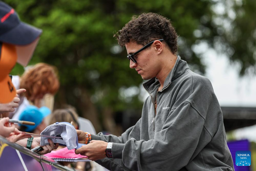 MELBOURNE, 13 marzo, 2025 (Xinhua) -- El piloto británico de la escudería McLaren, Lando Norris, interactúa con aficionados en el Melbourne Walk, previo al Gran Premio de Australia de Fórmula Uno, en Albert Park, en Melbourne, Australia, el 13 de marzo de 2025. (Xinhua/Qian Jun)