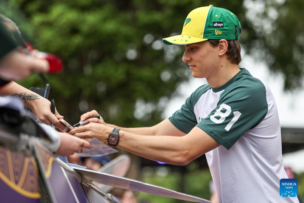 MELBOURNE, 13 marzo, 2025 (Xinhua) -- El piloto australiano de la escudería McLaren, Oscar Piastri, interactúa con aficionados en el Melbourne Walk, previo al Gran Premio de Australia de Fórmula Uno, en Albert Park, en Melbourne, Australia, el 13 de marzo de 2025. (Xinhua/Qian Jun)
