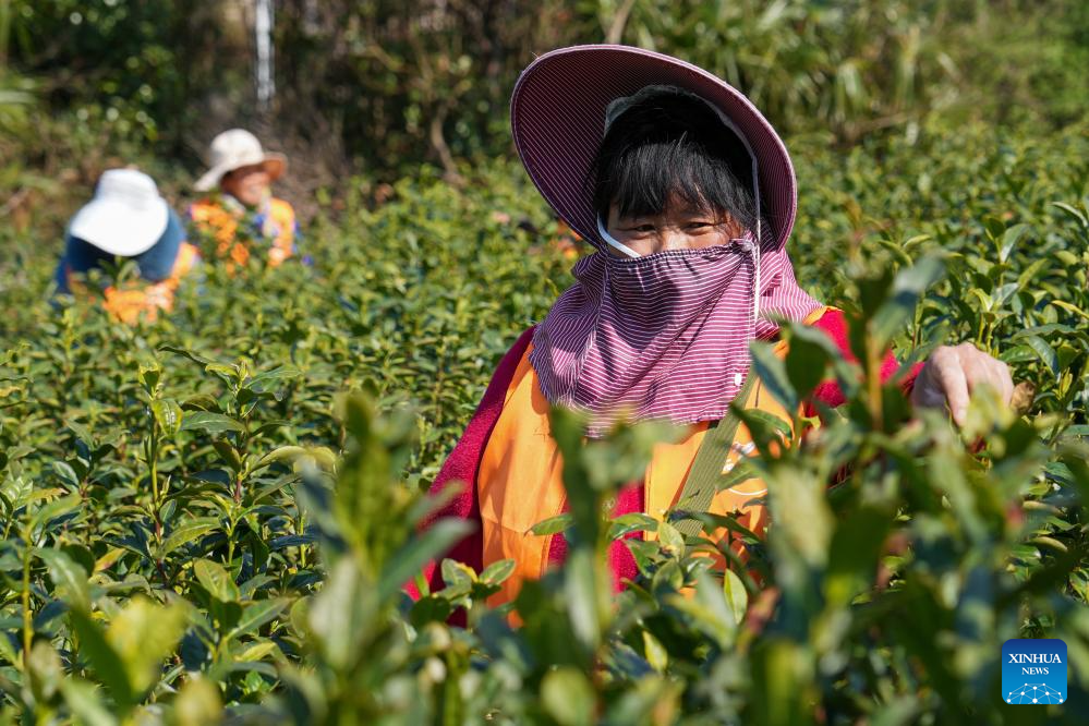 NANJING, 17 marzo, 2025 (Xinhua) -- Agricultoras recolectan hojas de té en un jardín de té de un parque de demostración agrícola, en el distrito de Wuzhong, en la ciudad de Suzhou, en la provincia de Jiangsu, en el este de China, el 17 de marzo de 2025. La temporada de cosecha de Biluochun, una de las principales variedades de té en China y la especialidad de Suzhou, ha llegado recientemente. Los agricultores en el distrito de Wuzhong de Suzhou se encuentran ocupados cosechando hojas de té previo al Festival Qingming para producir el té de Mingqian (literalmente "pre-Qingming"), que se elabora con los primeros brotes de té de la primavera y se considera de alta calidad. (Xinhua/Li Bo)