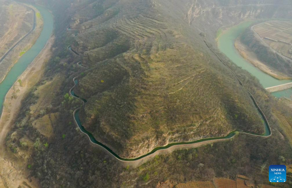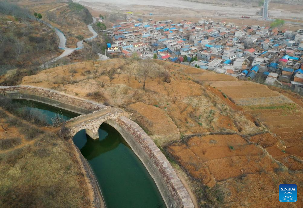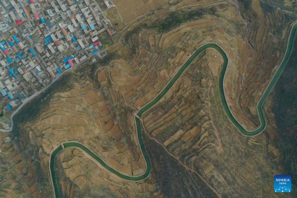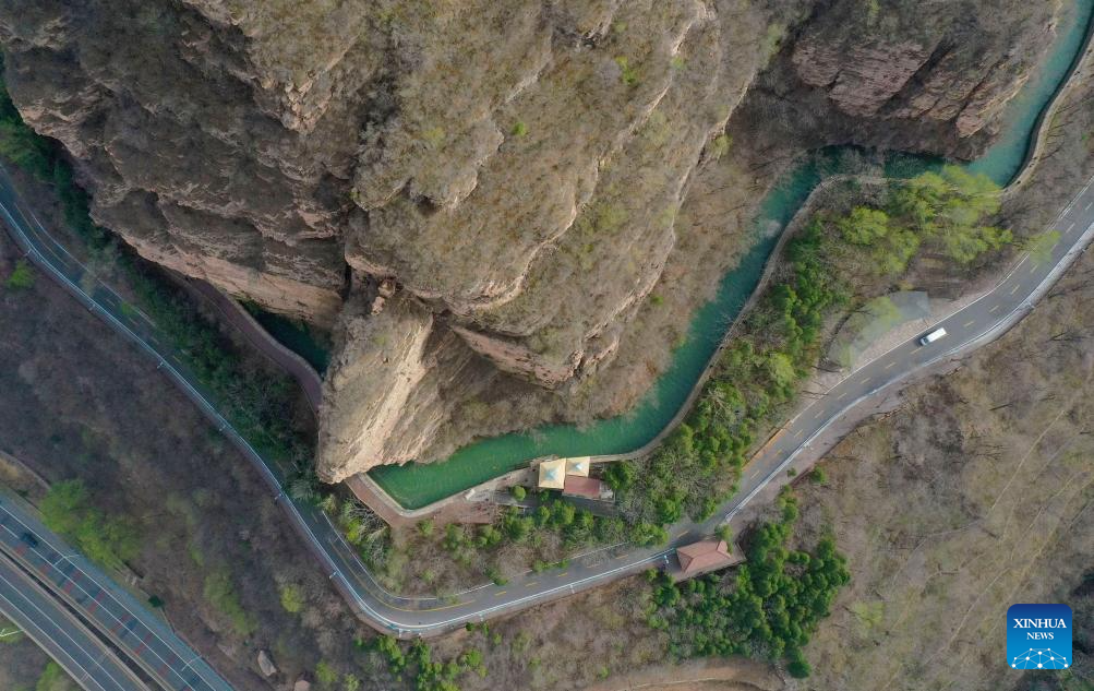 ZHENGZHOU, 3 abril, 2025 (Xinhua) -- Vista aérea tomada con un dron el 25 de marzo de 2025 del canal principal del Canal de Hongqi, en la ciudad de Linzhou, en la provincia de Henan, en el centro de China. El Canal de Hongqi, un proyecto de irrigación construido en las empinadas Montañas Taihang, es conocido como el "río artificial en el cielo". Este año marca el 60 aniversario de la terminación de su canal principal. (Xinhua/Hao Yuan)