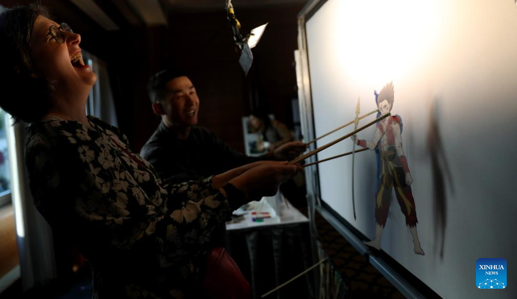 LONDRES, 3 abril, 2025 (Xinhua) -- Una mujer realiza una presentación de títeres de sombra de papel de Hunan con la temática de Ne Zha durante un evento promocional de cultura y turismo para la provincia de Hunan de China, en Londres, Reino Unido, el 3 de abril de 2025. La provincia de Hunan, en el centro de China, conocida por los imponentes pilares naturales en Zhangjiajie que inspiraron la película Avatar, exhibió sus ricos recursos culturales y turísticos en Londres el jueves. Decenas de funcionarios gubernamentales y representantes de la industria turística de China y Reino Unido asistieron al evento promocional, cuyo objetivo era explorar posibles colaboraciones en los ámbitos de la cultura y el turismo. (Xinhua/Li Ying)
