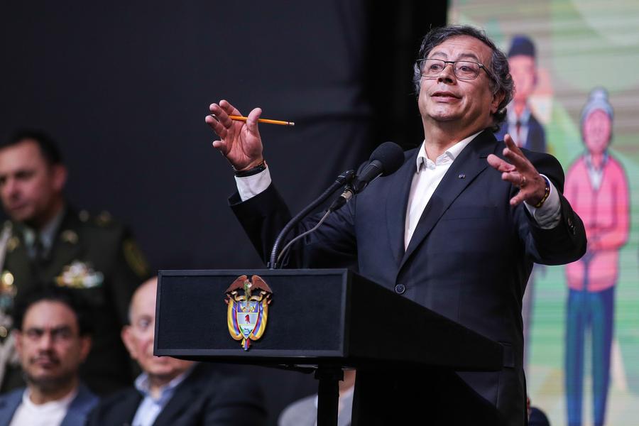 BOGOTÁ, 5 abr (Xinhua) -- El grupo armado Comuneros del Sur, facción de la guerrilla del ELN, entregó hoy sábado una tonelada de armamento en medio de un evento en el que firmó un acuerdo de paz y formalizó la desmovilización de sus miembros en un evento liderado por el presidente, Gustavo Petro, y el gobernador de Nariño (sur), Luis Alfonso Escobar.