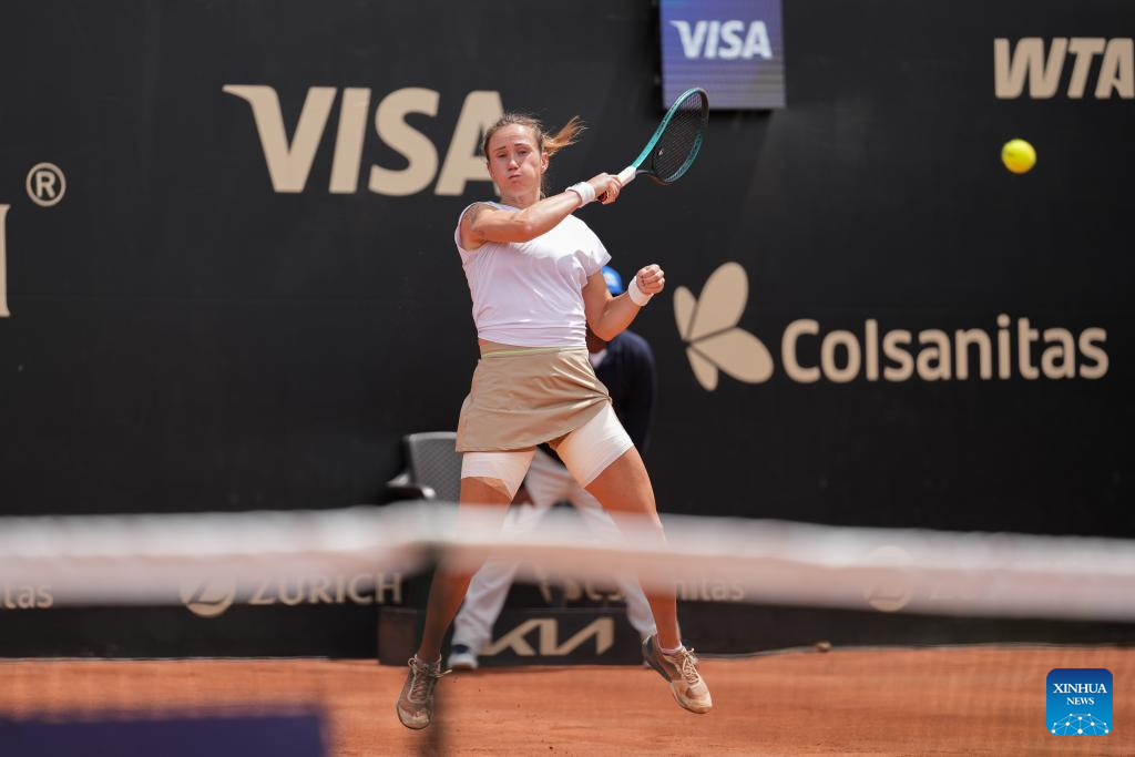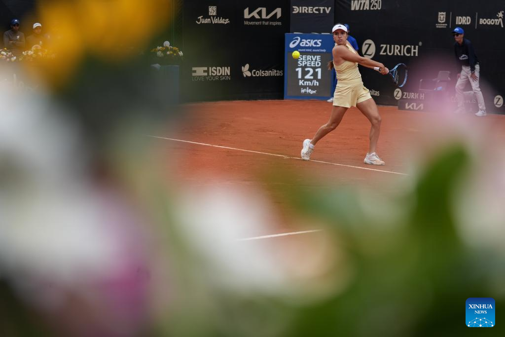BOGOTA, 6 abril, 2025 (Xinhua) -- Camila Osorio devuelve la pelota durante partido final de sencillos entre Camila Osorio, de Colombia, y Katarzyna Kawa, de Polonia, en el torneo de tenis Copa Colsanitas Zurich 2025 de la WTA, en la ciudad de Bogotá, capital de Colombia, el 6 de abril de 2025. (Xinhua/Andrés Moreno)