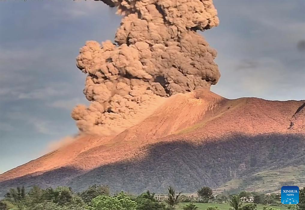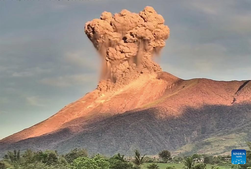 ISLA DE NEGROS, 8 abril, 2025 (Xinhua) -- El monte Kanlaon arroja material volcánico, en la isla de Negros, Filipinas, el 8 de abril de 2025. Una erupción explosiva sacudió el monte Kanlaon en el centro de Filipinas el martes por la mañana, dijo el Instituto Filipino de Vulcanología y Sismología. En un aviso, el instituto dijo que la erupción "está produciendo una columna voluminosa y curvada de aproximadamente 4.000 metros de altura que se desplaza hacia el suroeste". (Xinhua/Unidad de Gobierno Local de la Ciudad de Canlaon)