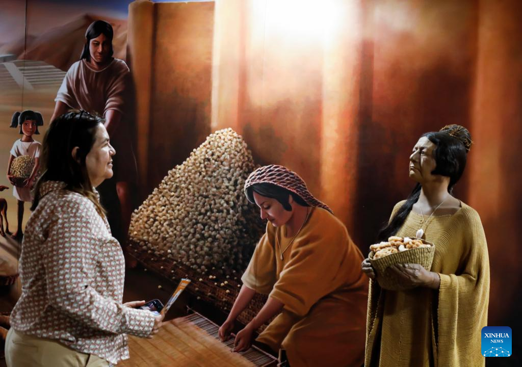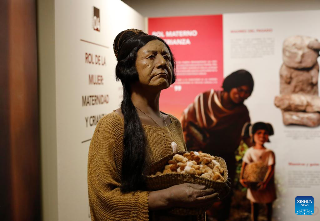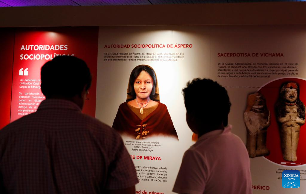 LIMA, 8 abr (Xinhua) -- Peruanos disfrutan en la ciudad de Lima de la exposición "El rol de la mujer en la civilización Caral" que resalta a través de diversos hallazgos, el importante papel que tuvo este sector de la comunidad dentro de la cultura milenaria que se desarrolló hace unos 5.000 años en la costa centro-norte de Perú.