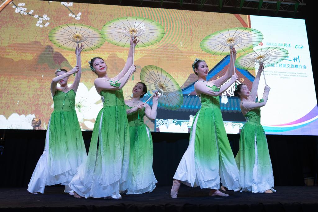 Imagen del 9 de abril de 2025 de bailarinas del Centro de Arte Jingya realizando una presentación durante la denominada "Conferencia de Promoción Económica, Comercial, Cultural y Turística de Fuzhou, ciudad de bendición", en la ciudad de Buenos Aires, capital de Argentina. La ciudad china de Fuzhou promociona en la ciudad de Buenos Aires, capital de Argentina, su riqueza económica, comercial, cultural y turística, a fin de trazar un camino de acción común con distintas alcaldías del país sudamericano, las que se mostraron interesadas en profundizar los intercambios. (Xinhua/Martín Zabala)