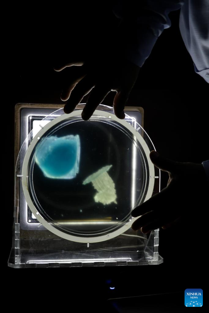 Imagen del 8 de abril de 2025 del investigador mexicano, Juan Alfonso Beltrán Fernández, observando modelos impresos en tercera dimensión (3D) a través de un lente polarizador, en la Ciudad de México, capital de México. Una innovadora técnica creada por Beltrán Fernández, del Instituto Politécnico Nacional (IPN), permite generar modelos en 3D para materializar de manera exacta las estructuras internas de las mamas, lo que podría ser clave para el diagnóstico temprano de cáncer en esta parte del cuerpo. (Xinhua/Francisco Cañedo)
