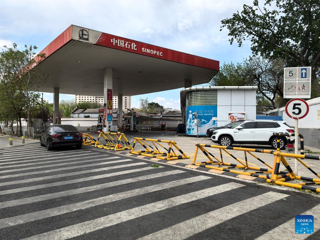 BEIJING, 12 abril, 2025 (Xinhua) -- Una estación de servicio está cerrada temporalmente debido a los fuertes vientos, en Beijing, capital de China, el 12 de abril de 2025. Muchas partes del norte de China están experimentando vientos huracanados y descensos de temperatura el sábado. (Xinhua/Li He)
