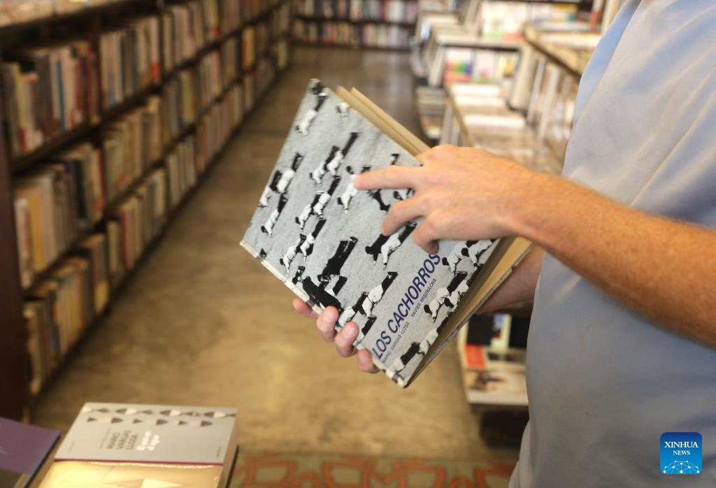 Una persona sostiene un ejemplar del libro "Los Cachorros" del fallecido escritor peruano y Premio Nobel de Literatura, Mario Vargas Llosa, en una librería, en Lima, Perú, el 14 de abril de 2025. Vargas Llosa murió el domingo en la ciudad de Lima, a los 89 años de edad, informó su hijo Alvaro Vargas Llosa. (Xinhua/Mariana Bazo)