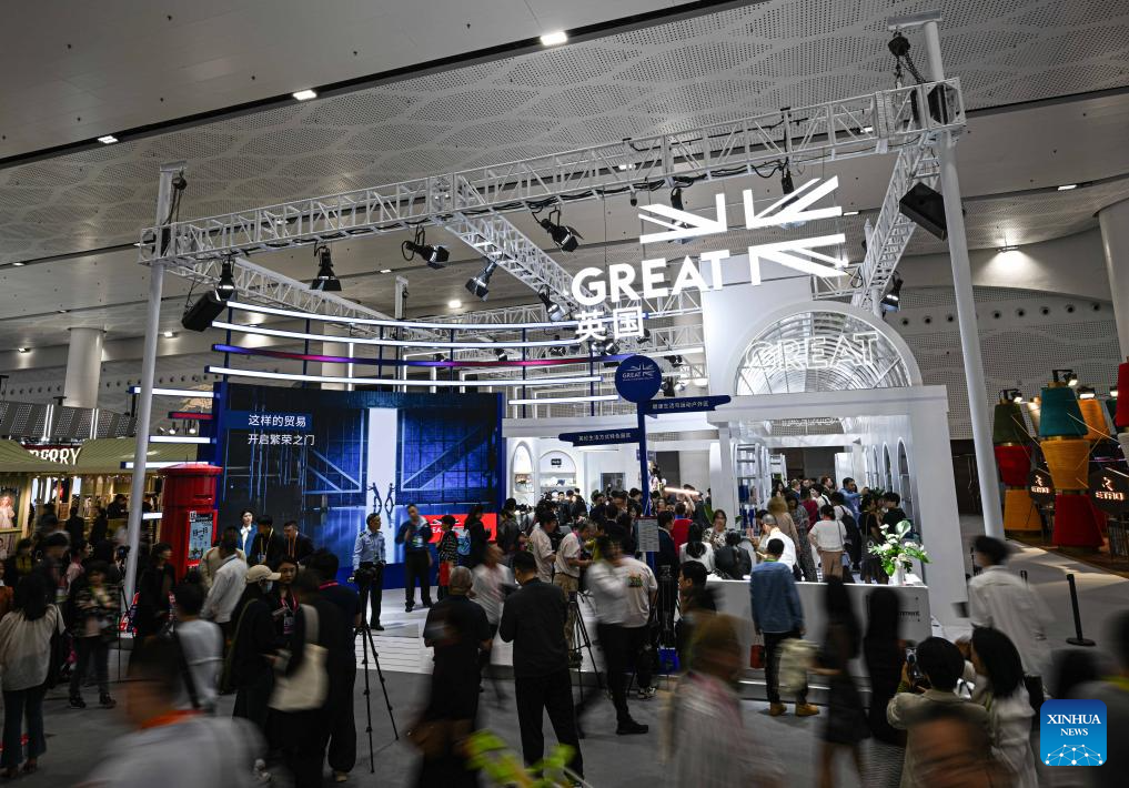 HAIKOU, 13 abril, 2025 (Xinhua) -- Personas visitan el pabellón de Reino Unido durante la Exposición Internacional de Productos de Consumo de China (CICPE, por sus siglas en inglés), en Haikou, en la provincia de Hainan, en el sur de China, el 13 de abril de 2025. La V CICPE durará del 13 al 18 de abril en la provincia insular de Hainan, en el sur de China. Reino Unido, el país invitado de honor de este año, ocupa más de 1.300 metros cuadrados para mostrar 53 marcas que abarcan moda, belleza y bienes domésticos. (Xinhua/Pu Xiaoxu)